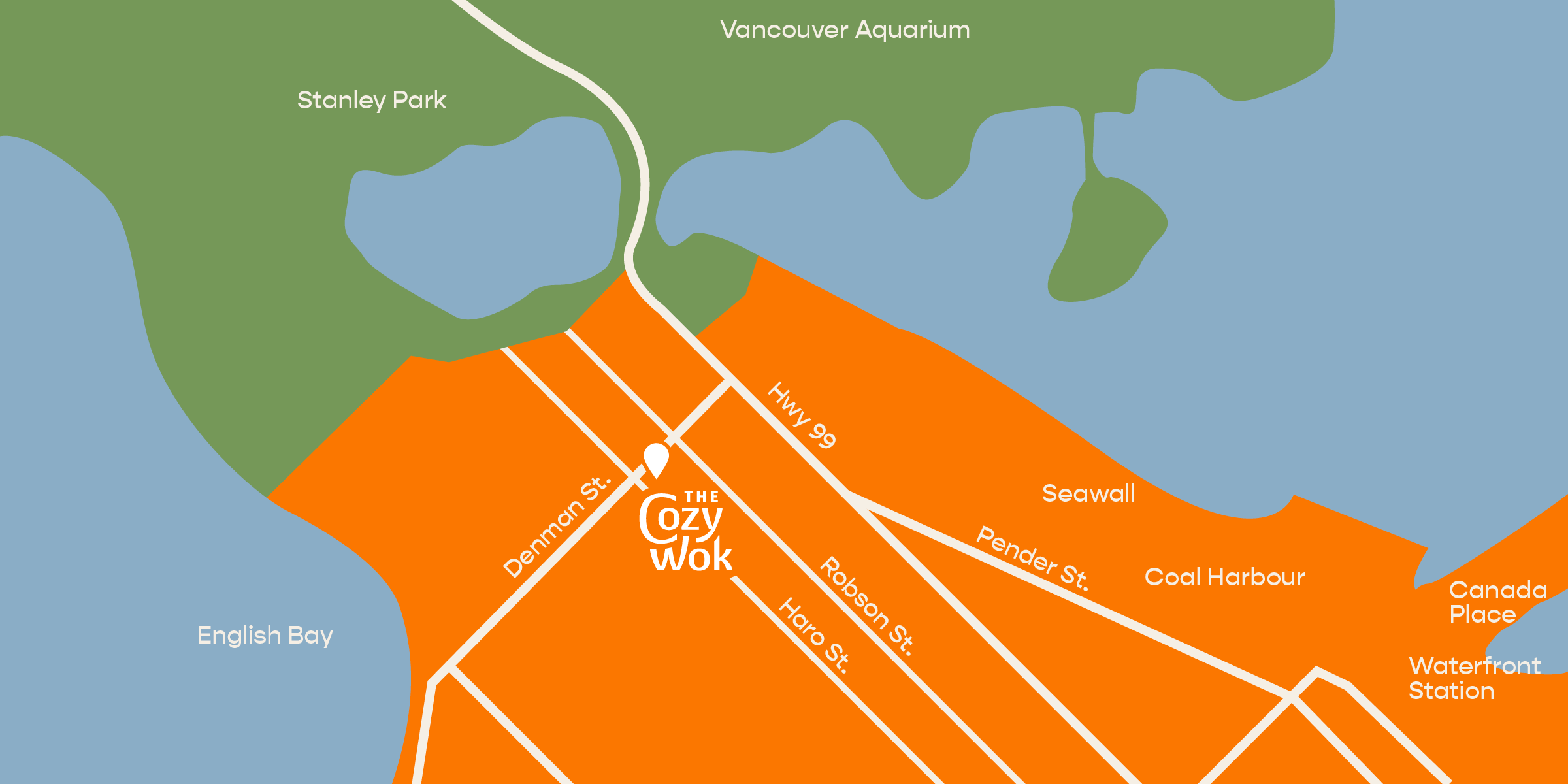 Talk to the ‘Wok.Phone: (604) 428-6868854 Denman St.Vancouver, BC V6G 2L8Open daily from 11 am to 11 pmHappy Hour from 2-5 pm + 9 pm-close Visit the ‘Wok.